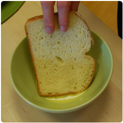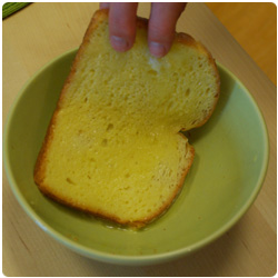 Beat the eggs (add salt to taste and, if you like, 2 tablespoons of milk so they will get more liquid), soak the bread slices on both sides. |