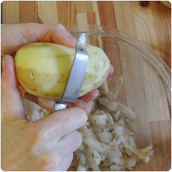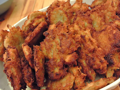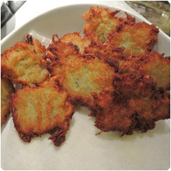 Latkes are traditionally eaten by Jews during the Hanukkah festival, but actually they are good to eat all year around. This potato pancakes are made with grated potato, flour and egg, often flavored with grated onion or garlic and seasoning.