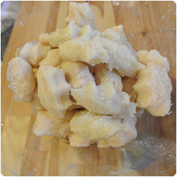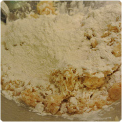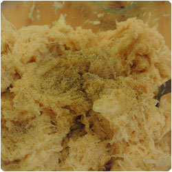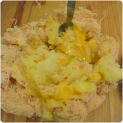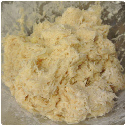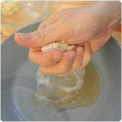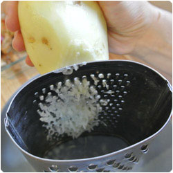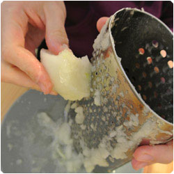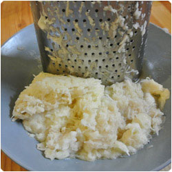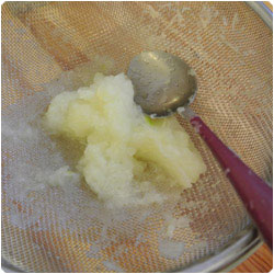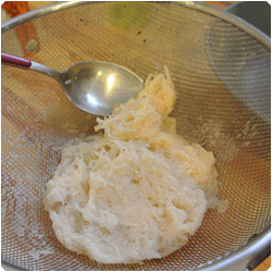 Strain the potatoes and squeeze them with your hand to take out all the water they have. |