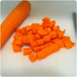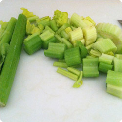 This is a new version of the classical Italian Minestrone soup, prepared with pearl barley. Let's begin by putting the barley in a pot and washing it a couple of time under cold water; at first the water will be whitish but after a couple of times it will get clean. Now start chopping the vegetables. |