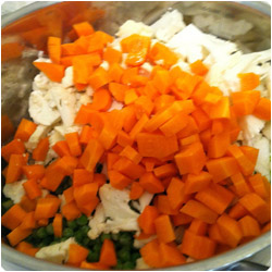 the celery, the cauliflower, the carrots and add them in the pot. |