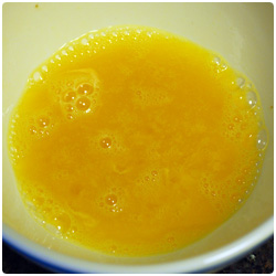 Mix the eggs in a bowl. Put the sugar, salt, fish soup stock powder |