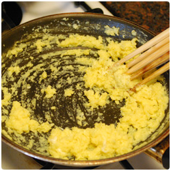 Cook egg. Make hard scramble eggs. |