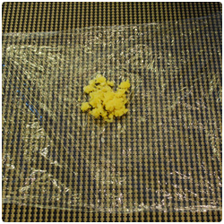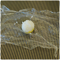 Put 1 tbs of scrumble eggs on the plastic wrap.Wet your fingers with water, so the rice won't attach to your fingers. Take a small ball of rice and add it on the top of the eggs. |